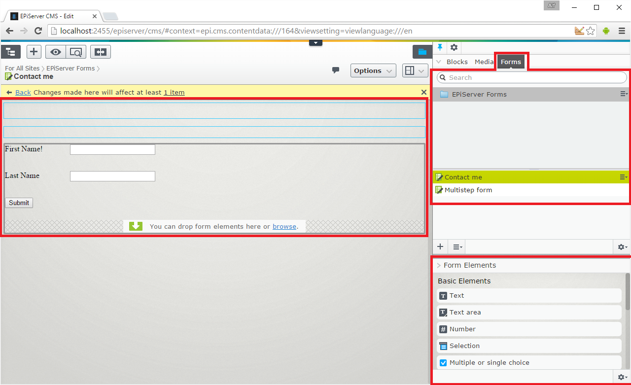 What I really like is how the Edit mode is extended so that the Editor doesn’t really need to work with the form as the Blocks it actually is. Edit mode has some new panes and thingies to easily work with the form.