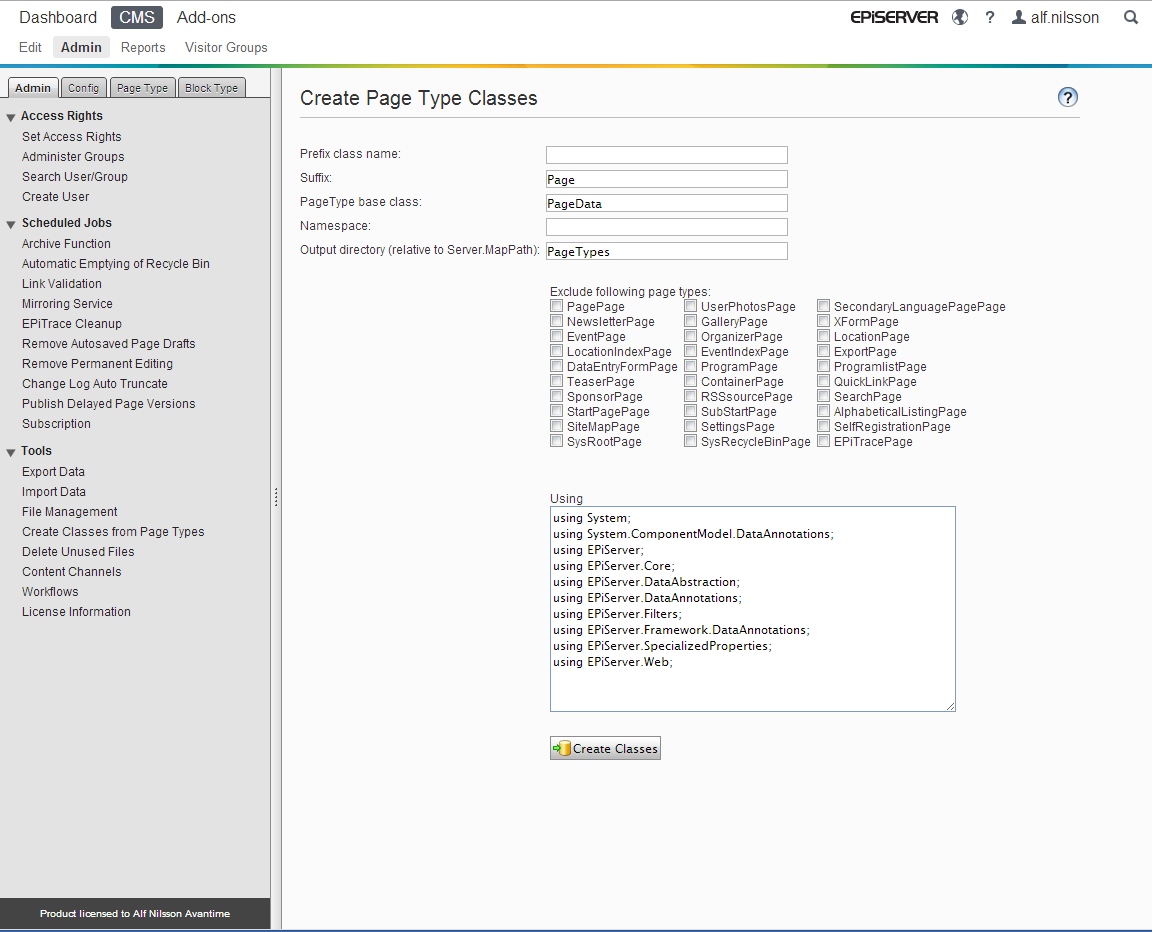 Note that since I only check for what’s in the database, avoid running this tool while already having Page Types Classes in your project.